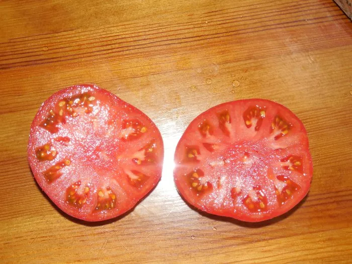 Главное достоинство этих томатов — их гармоничный сладкий вкус, который подтверждается техническими характеристиками сорта. Кислинка в нем едва уловима, что создает ощущение десертности. Насыщенный классический аромат и мясистая, но при этом плотная консистенция мякоти с малым количеством семян формируют полноценное вкусовое впечатление.