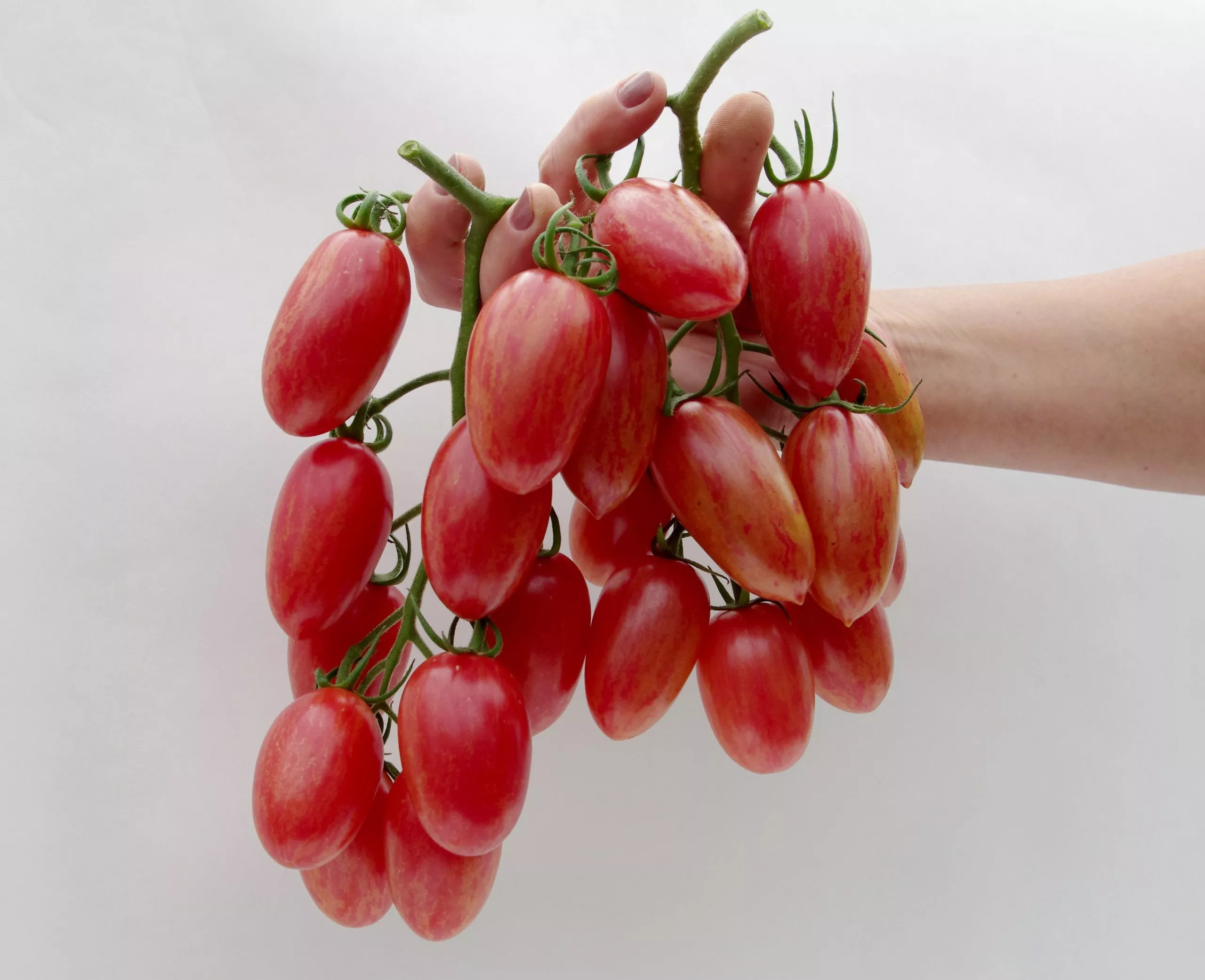 Размер: Все плоды в кисти выровнены, массой около 35 граммов. Такой небольшой, коктейльный размер идеален для украшения блюд, сервировки, употребления «с куста» и быстрой заморозки целиком.