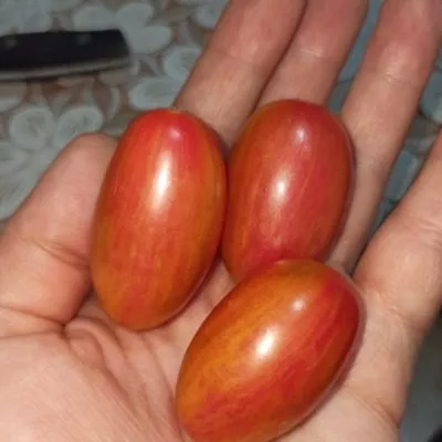Форма и структура: Плоды имеют вытянутую сливовидную форму (обратнояйцевидную) с четко выраженным острым «носиком» на конце. Кожица плотная, глянцевая, что предотвращает растрескивание даже при перепадах влажности.