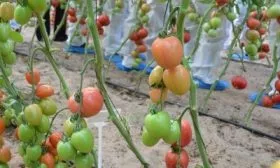 Полив должен быть регулярным, но не чрезмерным. Засуха может привести к сбросу завязей и растрескиванию созревающих томатов, а перелив — спровоцировать грибковые болезни и водянистость мякоти. Поливают под корень теплой водой после подсыхания верхнего слоя почвы. В теплице после каждого полива обязательны проветривания для снижения влажности воздуха.