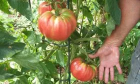 Плоды обладают выраженной плоскоокруглой, часто ребристой формой, что типично для биф-томатов. Их уникальная особенность — стабильно крупный размер и насыщенный темно-розовый цвет. Мякоть действительно многокамерная, плотная и очень мясистая, с высоким содержанием сухих веществ. Это определяет их универсальное кулинарное назначение.