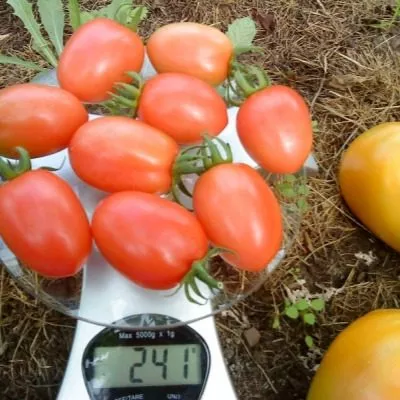 Главное украшение растения — кисти с плодами. Они завязываются и созревают дружными кистями, что является типичным признаком ультраранних сортов, ориентированных на получение быстрого и концентрированного урожая. Форма плодов — правильная яйцевидная или сливовидная, с идеально гладкой, глянцевой поверхностью без ребер.