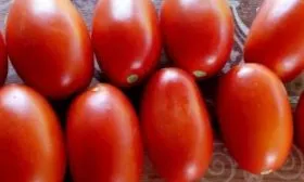 Удлиненная форма с плотной мякотью и прочной кожицей определяет основные потребительские качества этих томатов.