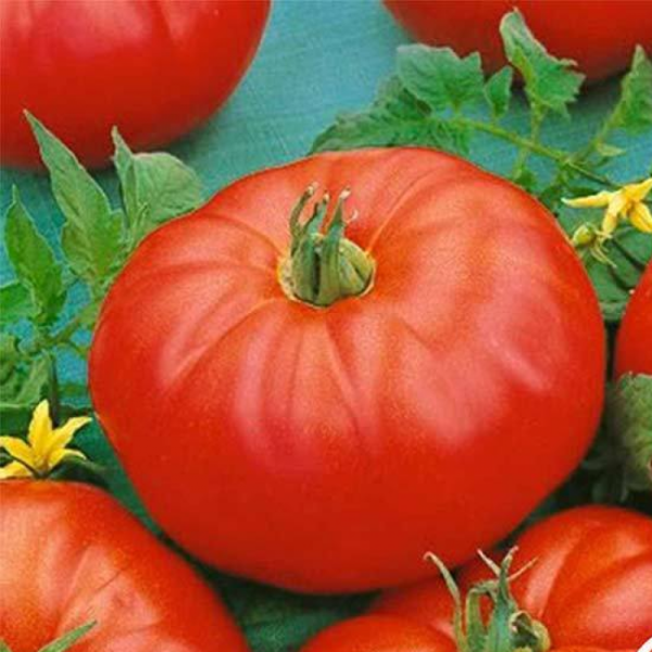 Плоды имеют характерную плоскоокруглую форму с ярко выраженной ребристостью в области плодоножки. Эта ребристость — не просто декоративный элемент, а признак многокамерности и высокой мясистости. Такая структура типична для томатов, предназначенных для нарезки и свежего потребления.