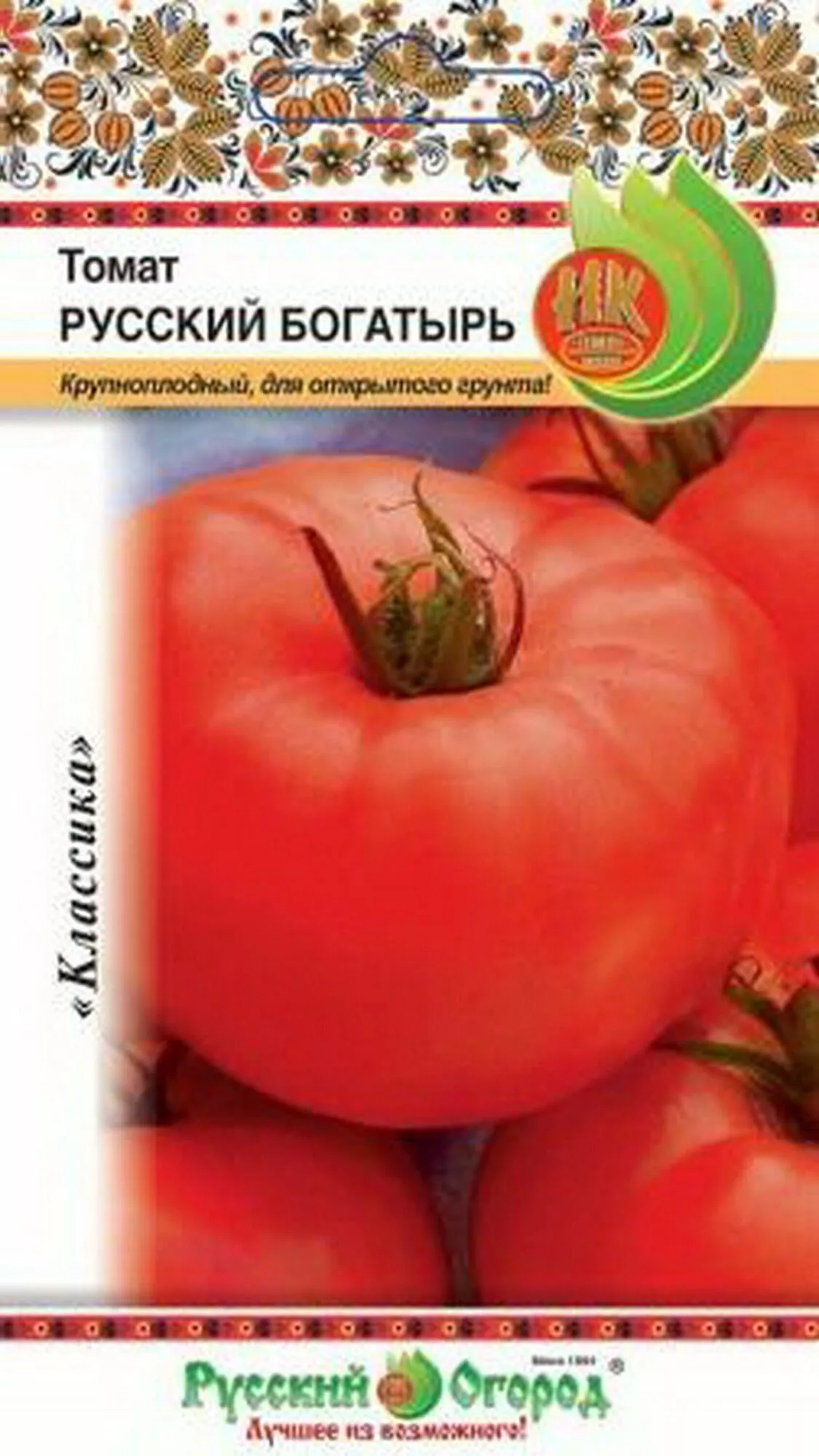 Данный томат является сортом, а не гибридом первого поколения (F1). Это ключевое отличие дает огороднику право самостоятельно заготавливать семена из выращенных плодов для посева в следующие сезоны без потери сортовых качеств. Русский богатырь создан отечественными специалистами и официально внесен в Государственный реестр селекционных достижений РФ. Такой статус подтверждает, что сорт прошел многолетние государственные испытания на устойчивость, урожайность и соответствие описанию.