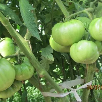 - Подвязка каждого стебля к отдельной опоре обязательна. Даже крепкие стебли под массой плодов весом 92-147 граммов могут клониться к земле, что повышает риск контакта плодов с почвой и развития болезней.