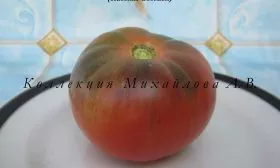 Плоды плоскоокруглой формы, крупные, массой 200-300 граммов, что характерно для биф-томатов. Мякоть средней плотности, сочная, многокамерная. Кожица тонкая, но достаточно прочная, чтобы выдерживать вес крупного плода.