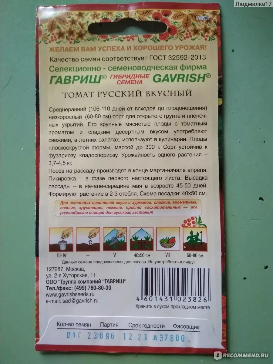 Русский вкусный является именно сортом, а не гибридом F1. Это его фундаментальная особенность, имеющая прямое практическое следствие для огородника. Семена из собственноручно выращенных плодов полностью сохраняют сортовые признаки растения: размер, вкус, сроки созревания и тип куста.