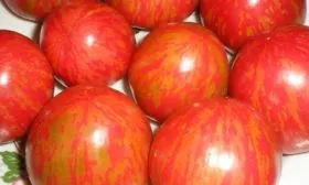 Употребление в свежем виде. Крупные, плоскоокруглые плоды массой 200-300 граммов с их яркой красно-желтой полосатой окраской эффектно смотрятся в нарезке и салатах. Мясистость позволяет получить плотные, нерасползающиеся ломтики. Для салатов плоды рекомендуется снимать в стадии полной биологической спелости.
