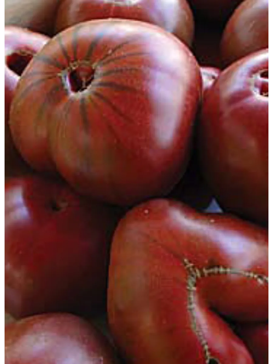 Мякоть созревшего плода сочная, мясистая, с малым количеством семян. Ее цвет внутри соответствует внешнему — она темно-красная с коричневатыми оттенками. Плодоножка имеет сочленение, поэтому спелые томаты снимаются легко, без повреждения стебля.