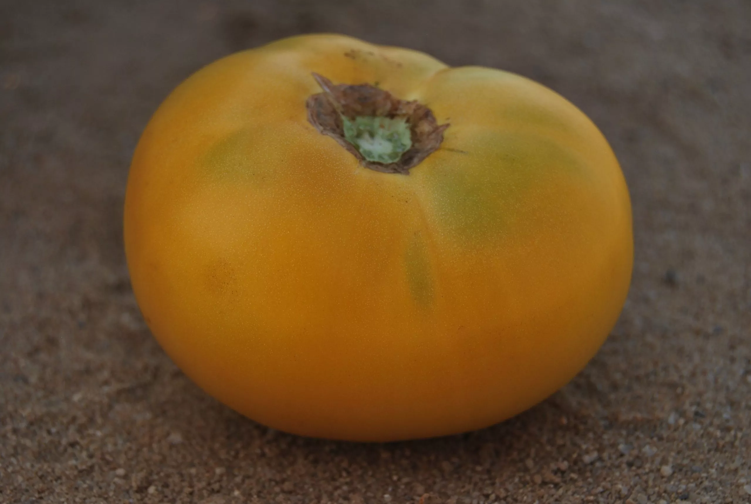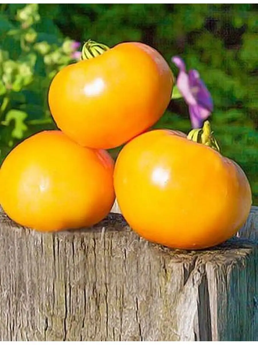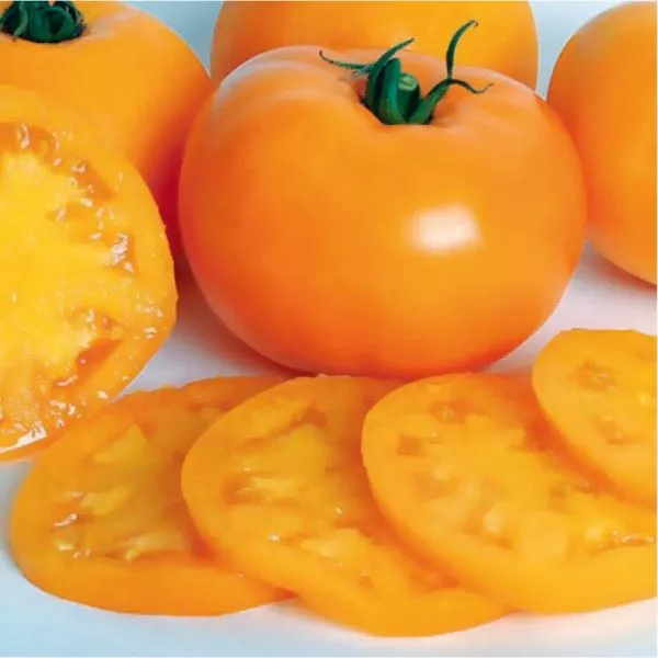 Мякоть мясистая, плотная, но нежная, многокамерная, с небольшим количеством семян. Кожица тонкая, но достаточно прочная, чтобы выдерживать массу зрелого плода. Плоскоокруглая форма и ребристость делают эти томаты очень узнаваемыми на фоне других желтоплодных сортов.