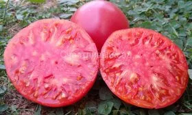 Размер плодов выдающийся: их масса составляет 450-650 граммов. На первых нижних кистях нередко завязываются томаты-гиганты массой более 700-800 граммов. Плодоножка имеет сочленение.