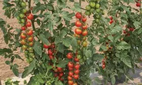 - Надежная подвязка к шпалере. Высокорослый куст, достигающий в теплице около 220 см, с тяжелыми гроздьями плодов требует мощной опоры. Обычный колышек не подойдет. Необходимо организовать вертикальную шпалеру с возможностью регулярно и аккуратно подкручивать мягкий шпагат или ленту по мере роста стебля.
