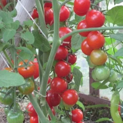 Мякоть сочная, сбалансированного вкуса. Урожайность, достигающая в оптимальных условиях пленочной теплицы 7,0 кг с квадратного метра, для сорта с такими мелкими плодами считается высокой и достигается именно за счет большого количества плодов в кисти и общего количества кистей на растении за сезон.