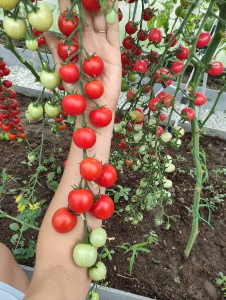 Плоды собраны в сложные, часто разветвленные кисти. Высокая товарность, заявленная в характеристиках, проявляется в одновременном созревании томатов в кисти, их выравненности по размеру и минимальном количестве некондиции. Благодаря раннему сроку созревания, первые грозди начинают окрашиваться одними из первых в теплице, обеспечивая ранний урожай для заготовок.
