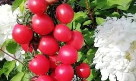 Высокорослый куст, достигающий двух метров, требует надежной вертикальной подвязки к шпалере или прочным кольям. Стебель подвязывают мягкой лентой по мере роста, также фиксируют тяжелые кисти с плодами, чтобы они не обломились.