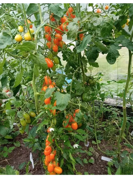 Высокая урожайность этого гибрида обеспечивается не размером, а количеством плодов. На низкорослом детерминантном кусте формируются многочисленные кисти, каждая из которых несет десятки мелких томатов. Благодаря раннему сроку созревания первые плоды можно снимать уже в начале лета, а основной сбор часто растягивается на несколько недель, поскольку завязи образуются последовательно.