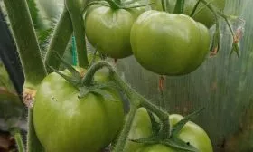- В период массового налива плодов. Проводят одну-две калийные подкормки. Калий улучшает вкусовые качества, сахаристость и способствует равномерному окрашиванию томатов. Подойдут сульфат калия, калимагнезия или зольный настой.