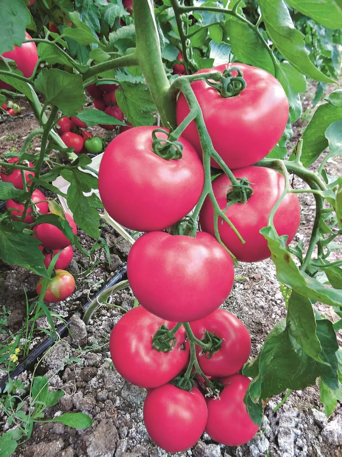 Полив должен быть регулярным и равномерным, особенно в период массового налива плодов. Крупноплодные сорта крайне чувствительны к резким перепадам влажности почвы: засуха, сменяющаяся обильным поливом, почти гарантированно приводит к растрескиванию томатов.