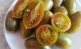 Классическая сливовидная форма и прочная, но не грубая кожица делают эти томаты идеальными для маринования и засолки. Плоды сохраняют форму, не растрескиваются при термической обработке, а их полосатая окраска создает необычный декоративный эффект в банке. Также мясистость и небольшой размер (35-40 г) предопределяют отличную результативность при вялении или сушке.