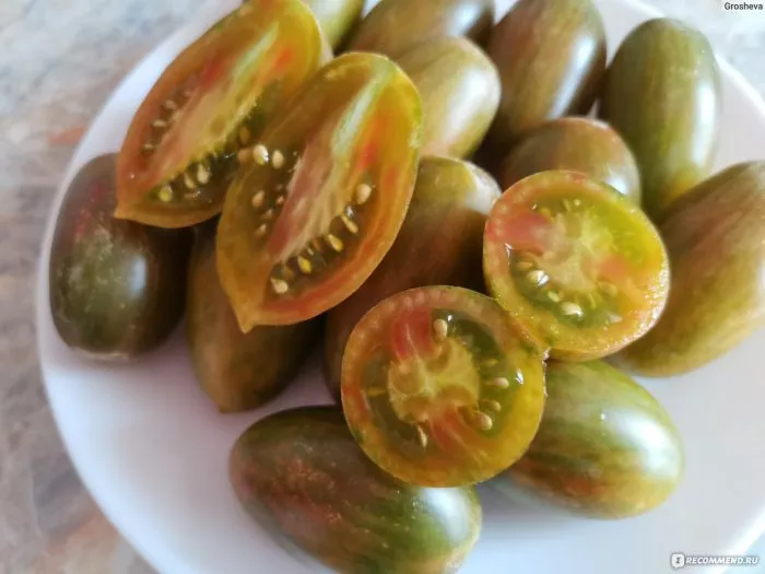 Классическая сливовидная форма и прочная, но не грубая кожица делают эти томаты идеальными для маринования и засолки. Плоды сохраняют форму, не растрескиваются при термической обработке, а их полосатая окраска создает необычный декоративный эффект в банке. Также мясистость и небольшой размер (35-40 г) предопределяют отличную результативность при вялении или сушке.