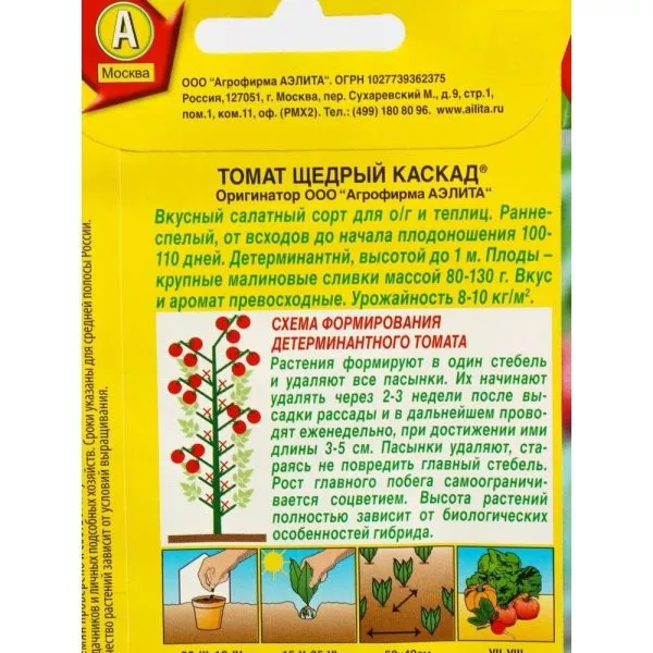 | Тип роста | Детерминантный | Рост основного стебля ограничен генеративной верхушечной кистью. Однако высота до 100 см требует обязательного формирования (пасынкования и подвязки) для предотвращения загущения. |