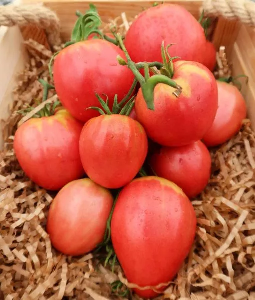 Именно плоды являются главной ценностью этого сорта, ради которой его выбирают. Их классическая сердцевидная форма с четко выраженным заостренным кончиком («носиком») делает их легко узнаваемыми и очень привлекательными. Полностью созревшие томаты имеют равномерный насыщенный розовый цвет по всей поверхности, включая область у плодоножки, где у многих других сортов часто остается зеленое или бледное пятно.