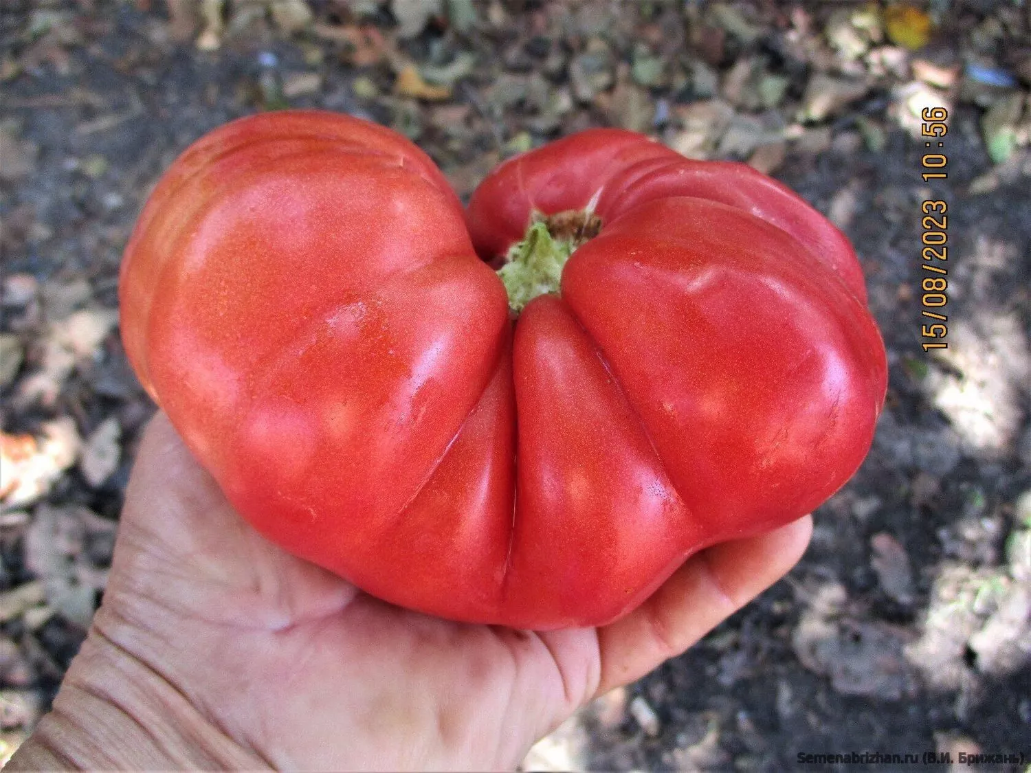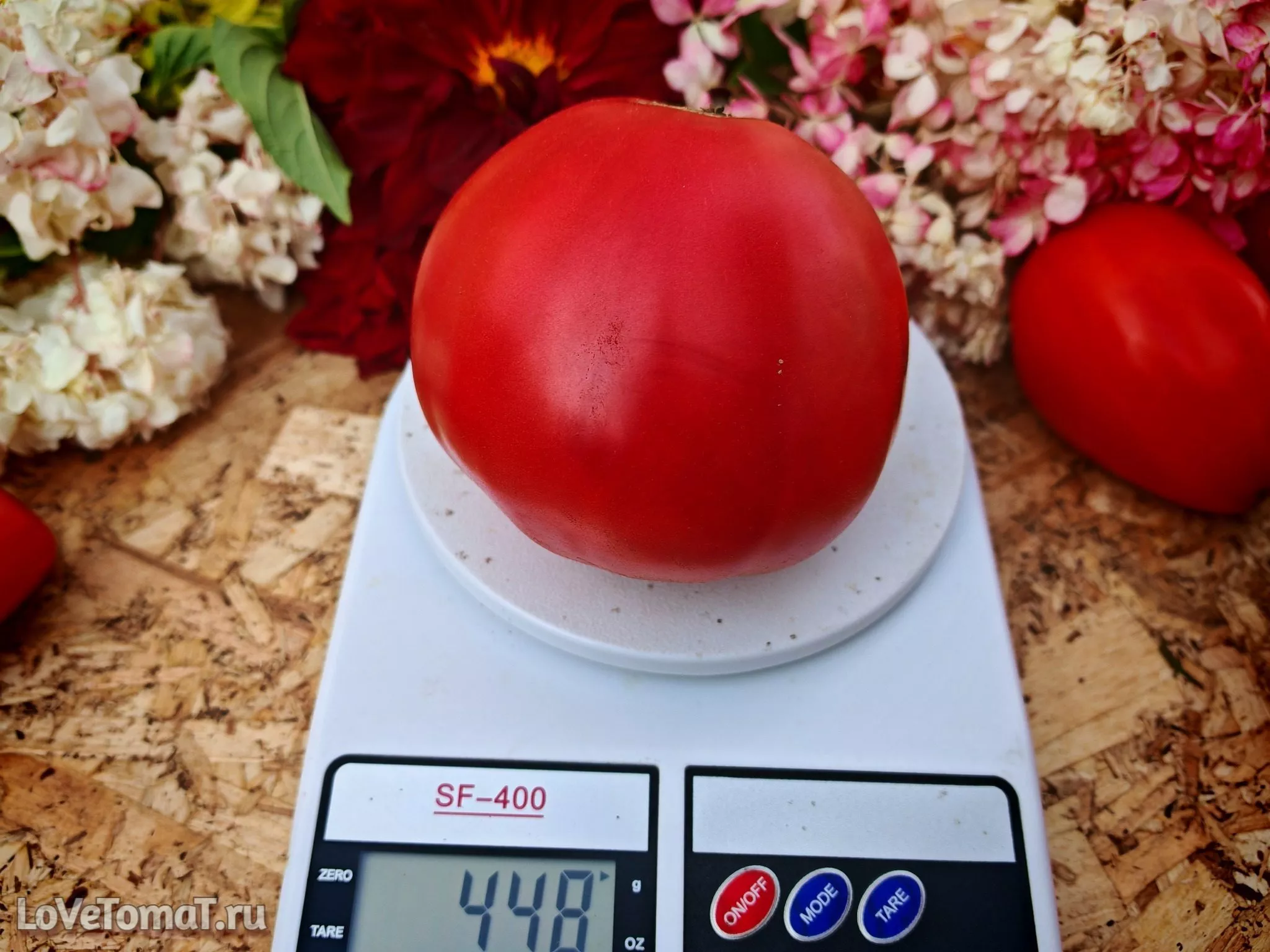 Главная отличительная черта сорта — его впечатляющие плоды. Их размеры не просто крупные, а рекордные для многих огородных коллекций. Средний вес в 400-600 граммов является скорее нормой, а не пределом. При грамотной агротехнике, включающей нормирование количества завязей в кисти, томаты легко набирают массу от 1 килограмма и более.