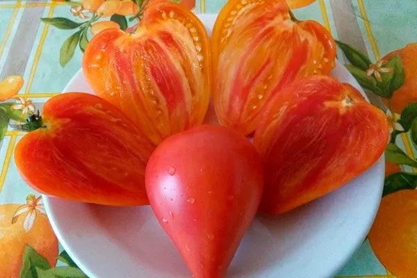 Сердце абрикосовой зебры – результат работы французских селекционеров под руководством Жан-Клода Бошера. Этот экзотический сорт был получен путём скрещивания итальянского Бычьего сердца и Красной зебры.