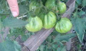 Главная отличительная черта зрелых плодов — насыщенная малиново-розовая окраска. На стадии технической спелости у плодоножки часто наблюдается темно-зеленое пятно, которое полностью исчезает по мере созревания. Полностью спелый томат окрашен равномерно.