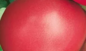 В фазе полной биологической спелости кожица приобретает равномерный, глубокий малиново-розовый оттенок. Характерное для многих сортов зеленое пятно у плодоножки отсутствует, что является признаком качественного созревания.