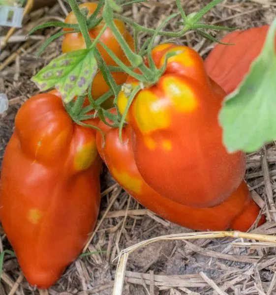 Форма плодов — их ключевая особенность. Она не просто нестандартна, но и вариативна. Даже в пределах одной кисти можно наблюдать разные экземпляры. Чаще всего они удлиненные, банановидные, но нередко приобретают причудливые очертания: форму рога или вытянутого перцевидного сердца с четко выраженным носиком на вершине. Эта индивидуальность каждого помидора является визитной карточкой сорта.