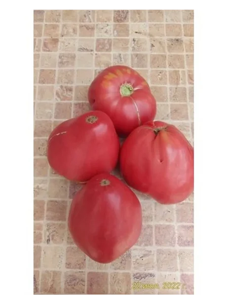 Плоды относятся к категории биф-томатов (beefsteak). Это означает, что их внутренняя структура мясистая и плотная, с малым количеством семян и очень небольшими семенными камерами. При разрезе видна сахаристая, почти без пустот мякоть, что и обуславливает высокий выход полезной массы при переработке на сок или соус.