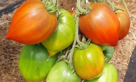 - Из-за крупноплодности и сердцевидной формы плоды в кистях бывают тяжелыми. Каждую кисть с наливающимися томатами необходимо дополнительно подвязывать к опоре мягкой лентой, чтобы избежать обламывания.