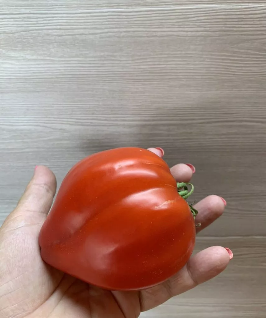 Кожица у них тонкая, но при этом достаточно плотная, чтобы противостоять растрескиванию при грамотном поливе. Мякоть очень мясистая, сахаристая на изломе, с малым количеством семян и многокамерная. Средняя масса плода соответствует заявленным характеристикам и составляет 300-400 граммов.