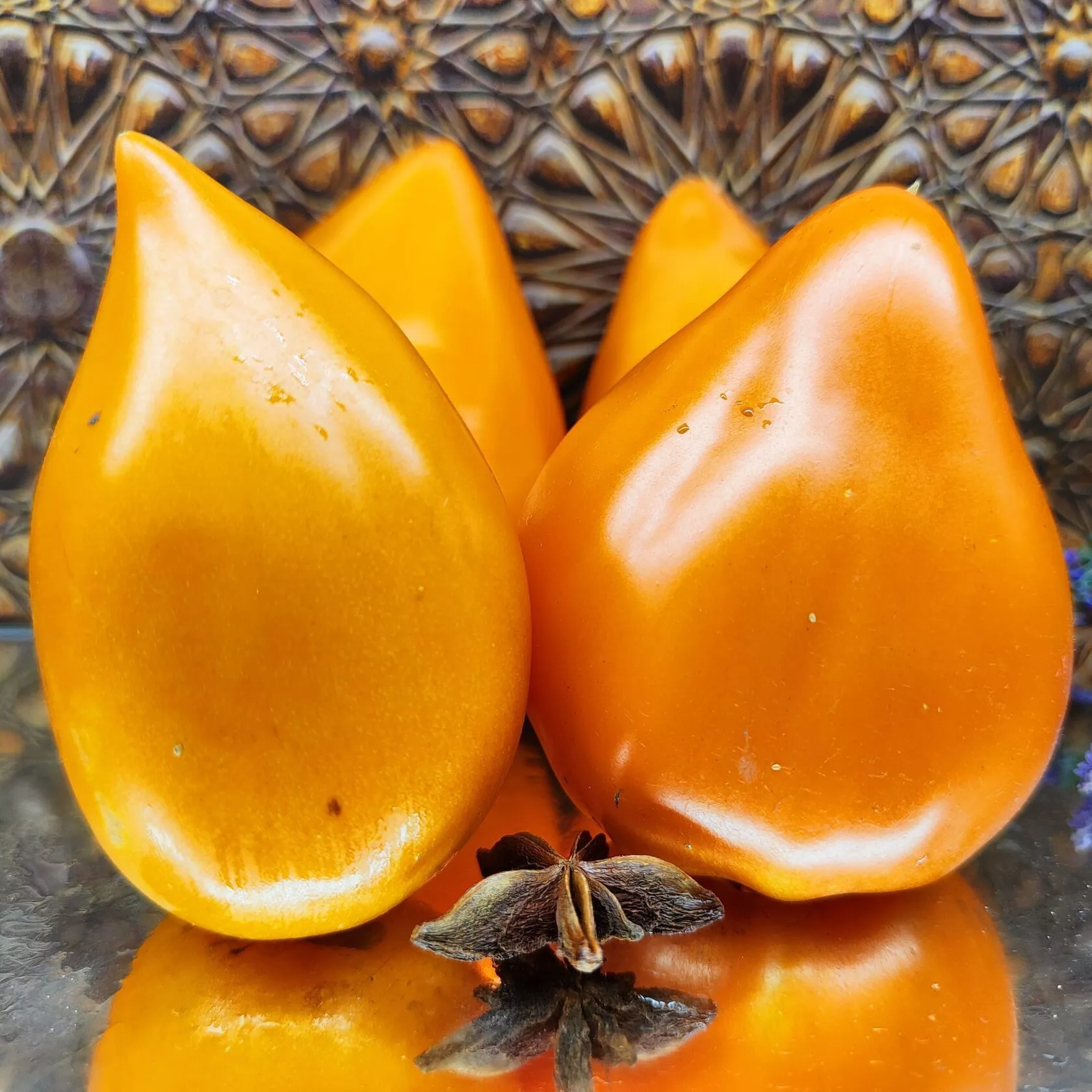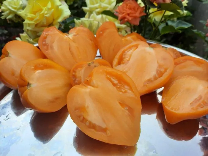 Плоды – визитная карточка этого сорта. Они имеют классическую сердцевидную, слегка вытянутую форму с выраженным «носиком». Главное отличие от многих других «сердец» – их насыщенный оранжевый цвет в зрелом состоянии, который обусловлен высоким содержанием каротиноидов.