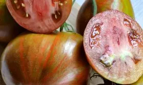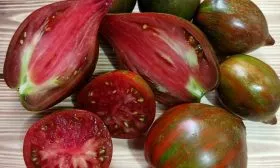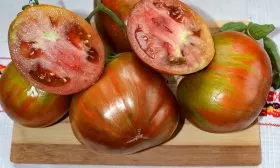 - Свежее потребление. Идеальная сердцевидная форма и экзотическая окраска делают эти томаты главным украшением летних салатов, нарезки и овощных тарелок. Сбалансированный, прекрасный вкус высоко ценится в натуральном виде.