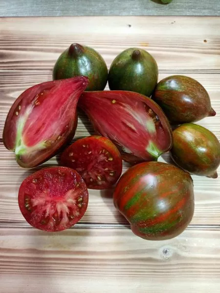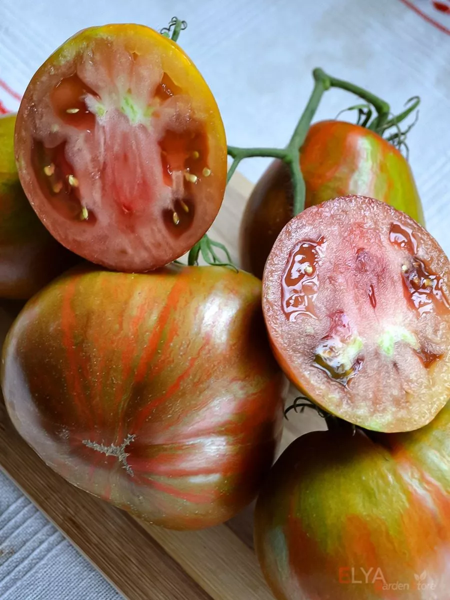- Свежее потребление. Идеальная сердцевидная форма и экзотическая окраска делают эти томаты главным украшением летних салатов, нарезки и овощных тарелок. Сбалансированный, прекрасный вкус высоко ценится в натуральном виде.