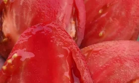 Мякоть обладает высокой плотностью и мясистостью, на изломе сахаристая, с небольшим количеством семенных камер и сока. Такая структура, характерная для биф-томатов, обеспечивает насыщенный, гармоничный вкус с преобладающей сладостью и легкой, приятной кислинкой, исключающей водянистость.