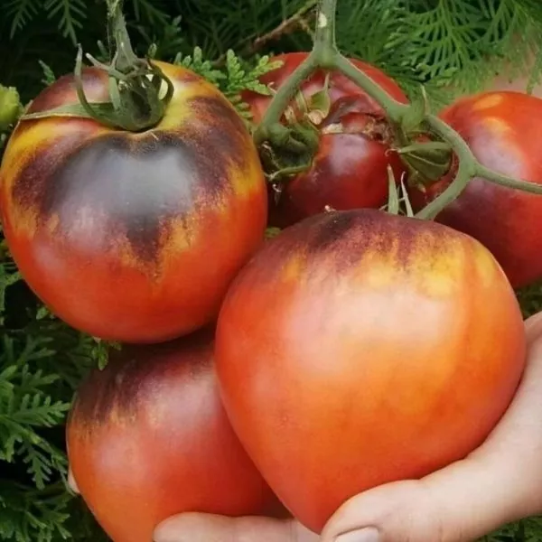 Мякоть у плодов мясистая, сочная, но при этом плотная и не водянистая. Такая текстура обеспечивает насыщенное «томатное» ощущение во рту. Фруктовые нотки в послевкусии часто ассоциируются с абрикосом или спелой сливой, а у некоторых плодов, особенно выращенных при максимальной освещенности, может проявляться легкий цитрусовый оттенок. Этот вкус максимально раскрывается, когда плод созревает полностью на кусте и потребляется свежим.