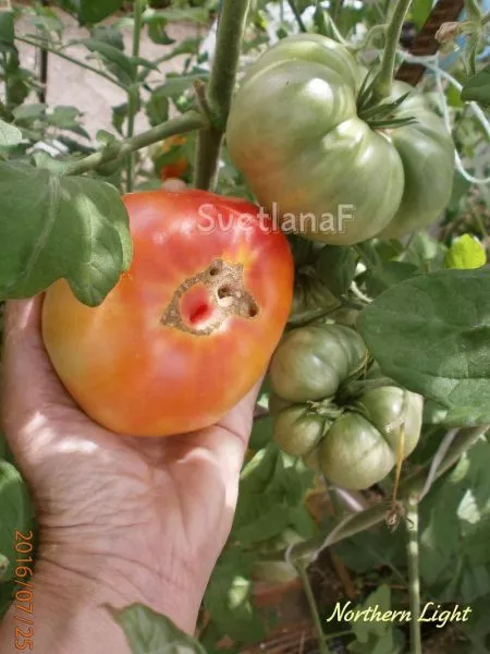Ключевой особенностью, заложенной при создании сорта, является его негибридное происхождение. Северное Сияние не является гибридом F1, что выделяет его на фоне многих современных высокопродуктивных форм. Это чистый сорт, а значит, семена из его плодов можно собирать и использовать для посева в следующем сезоне с высокой вероятностью сохранения всех родительских признаков: окраски, крупноплодности, типа роста и вкуса.