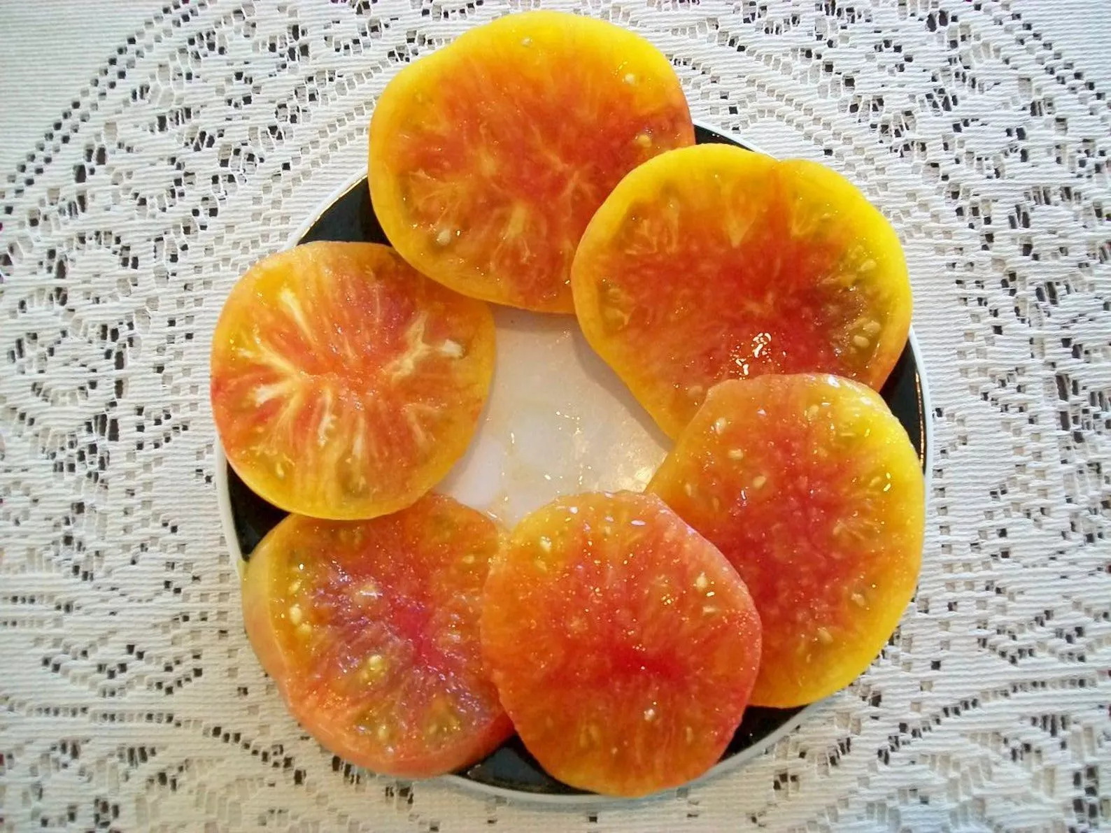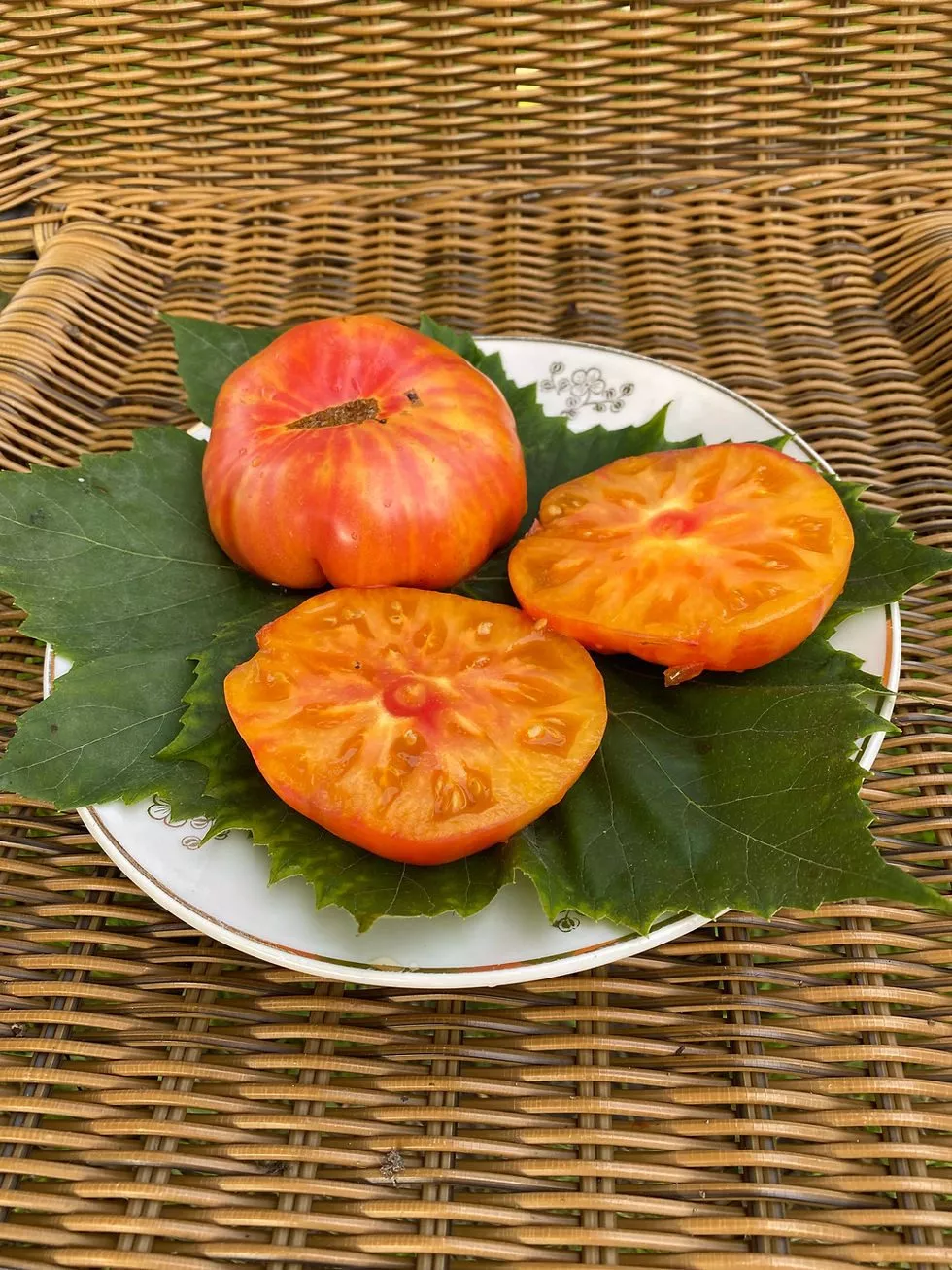 - В свежем виде. Яркая желто-розовая окраска делает эти томаты украшением любого стола. Их сладость позволяет создавать салаты с минимальным количеством масла или соуса, раскрывая чистый вкус овощей. Они отлично сочетаются с мягкими сырами, зеленью и луком.