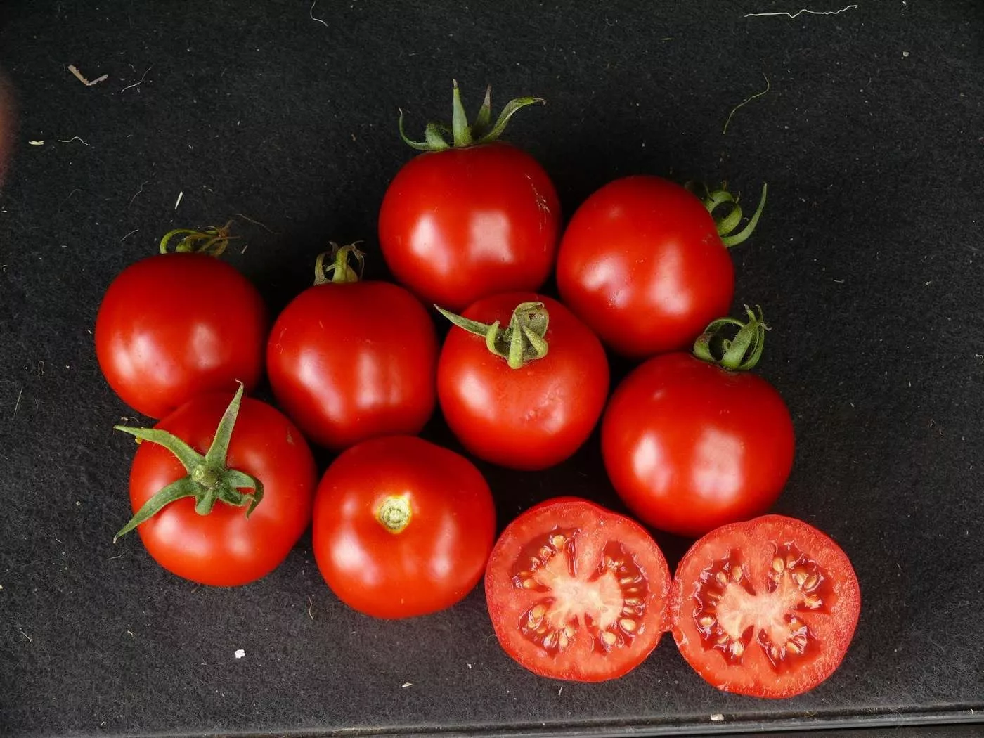 Окраска зрелого плода равномерная, насыщенно-красная, без зеленого или желтого пятна у плодоножки. Кожица прочная, гладкая, устойчивая к растрескиванию даже при перепадах влажности почвы. Эта особенность, наряду с плотной мякотью, обуславливает отличную транспортабельность и лежкость собранного урожая.