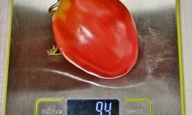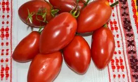 Плоды имеют запоминающуюся, характерную именно для этого сорта форму – удлиненную сливовидную с аккуратным вытянутым округлым носиком на вершине. Такая форма не только декоративна, но и практична: помидоры плотно укладываются в банку для консервирования. В стадии технической спелости у плодоножки отсутствует зеленое пятно, а при полном созревании окраска становится равномерной, ярко-красной. Средняя масса плода, согласно характеристикам, составляет 100-130 граммов.