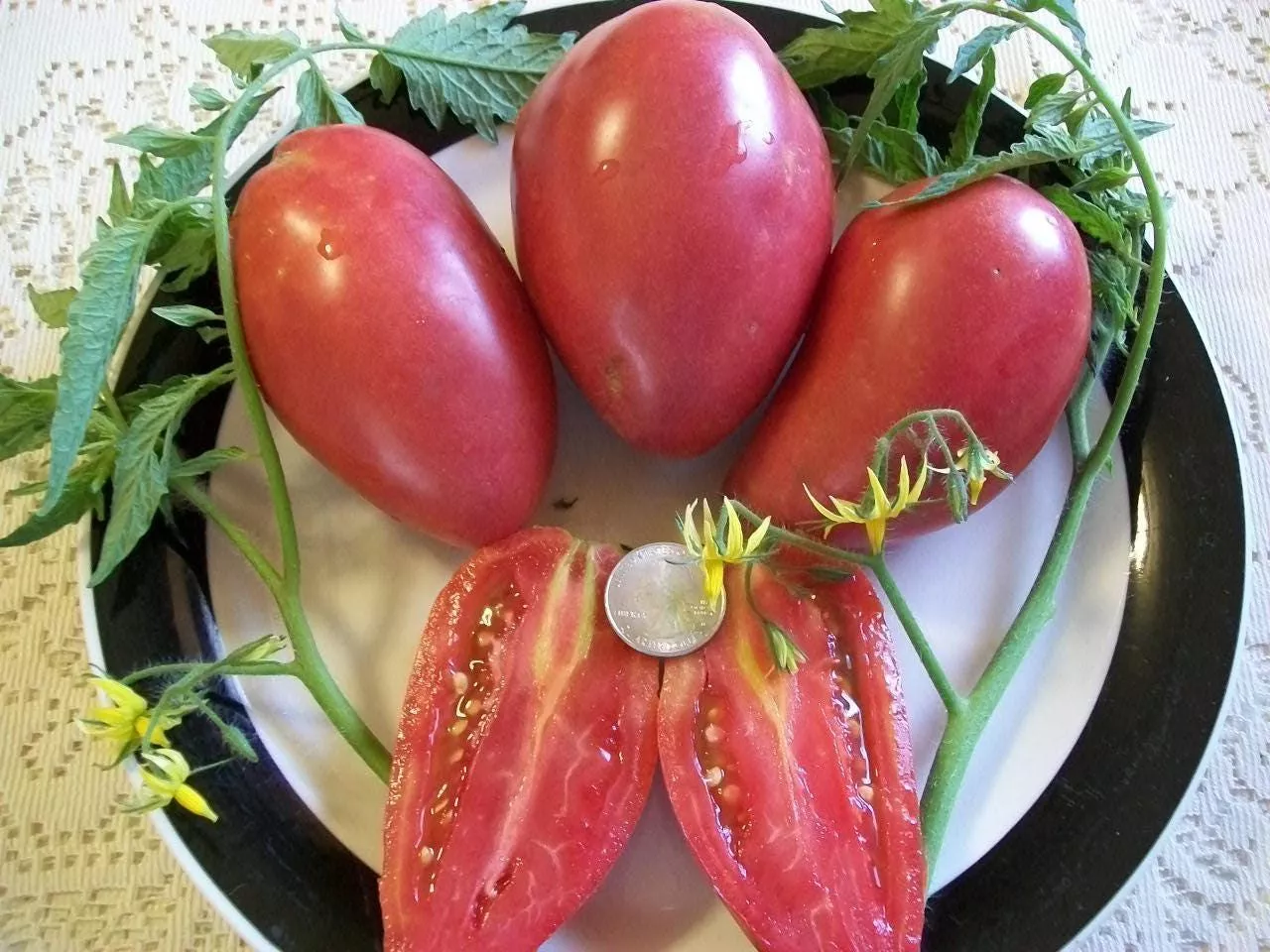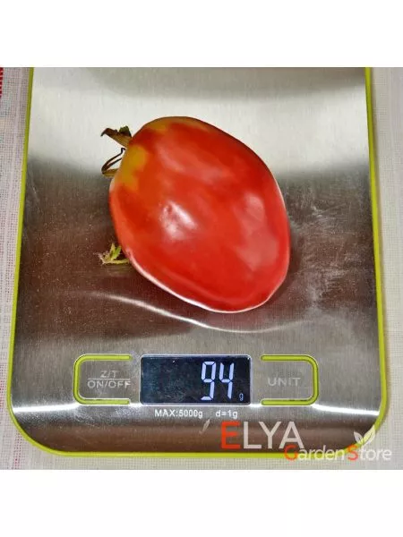 Плоды имеют запоминающуюся, характерную именно для этого сорта форму – удлиненную сливовидную с аккуратным вытянутым округлым носиком на вершине. Такая форма не только декоративна, но и практична: помидоры плотно укладываются в банку для консервирования. В стадии технической спелости у плодоножки отсутствует зеленое пятно, а при полном созревании окраска становится равномерной, ярко-красной. Средняя масса плода, согласно характеристикам, составляет 100-130 граммов.
