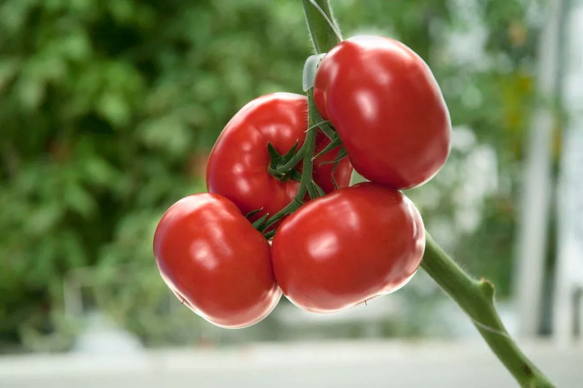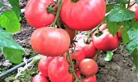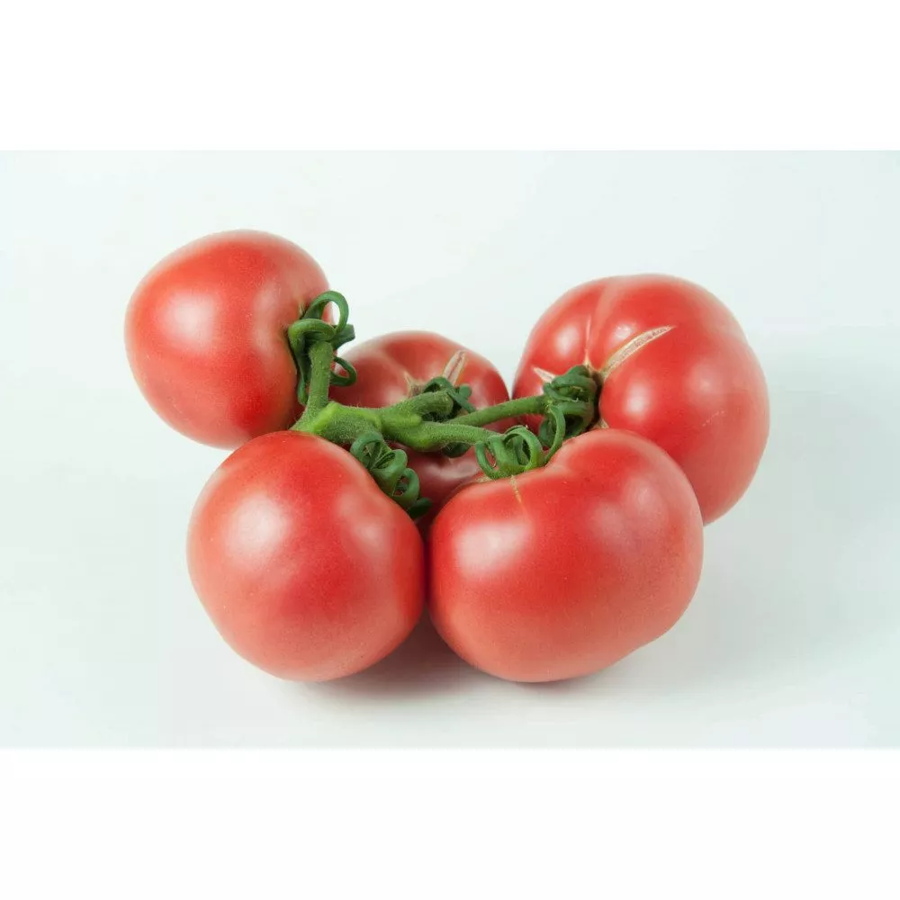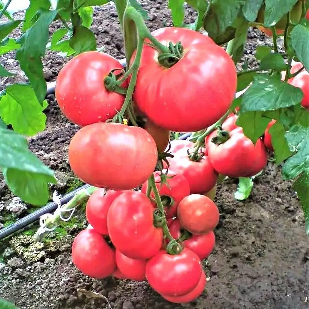 Плоды имеют классическую плоскоокруглую форму, часто с выраженной ребристостью в области плодоножки. Это характерный сортовой признак. Насыщенный розовый цвет без зеленого пятна у основания свидетельствует о равномерном созревании и накоплении ликопина.