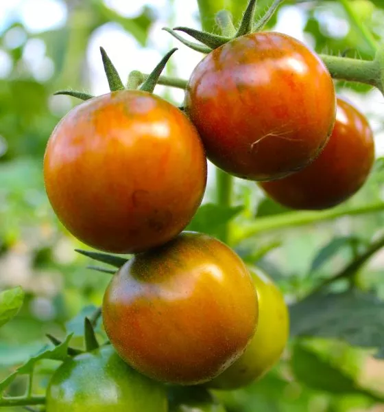 Как и у большинства томатов с темной кожицей, плоды этого сорта отличаются повышенным содержанием полезных веществ. В них накапливается больше сахаров, а также антоцианов — природных пигментов-антиоксидантов, которые и придают кожице и мякоти характерный коричнево-бордовый цвет. Эти соединения не только полезны для здоровья, но и делают вкус более насыщенным и сложным по сравнению со многими красноплодными сортами.