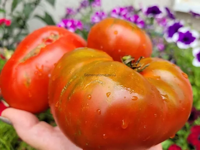 Ключевая особенность растения — формирование сложных, разветвленных кистей. На одной кисти могут одновременно завязываться и развиваться плоды разного размера. Как правило, самые крупные томаты, массой до 700 граммов, формируются в нижней части куста, тогда как на верхних ярусах плоды мельче, в районе 250-400 граммов.