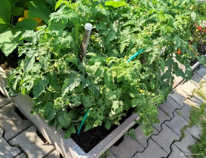 - Подвязка обязательна. Даже крепкий штамбовый стебель может не выдержать веса нескольких плодов массой до 600 граммов. Установите надежный колышек или подвяжите центральный стебель к шпалере сразу после высадки, чтобы избежать надломов кистей или самого стебля позже.