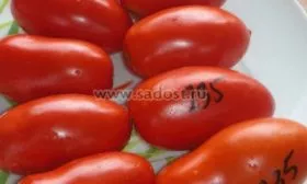 Внешний вид плодов – визитная карточка сорта. Они имеют однородную, выровненную цилиндрическую (сливовидную) форму со слабой ребристостью у плодоножки. В стадии технической спелости плоды светло-зеленые, без темного пятна у основания. Полностью созревшие томаты становятся насыщенно-красными, с глянцевой, прочной кожицей.